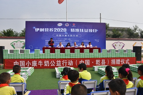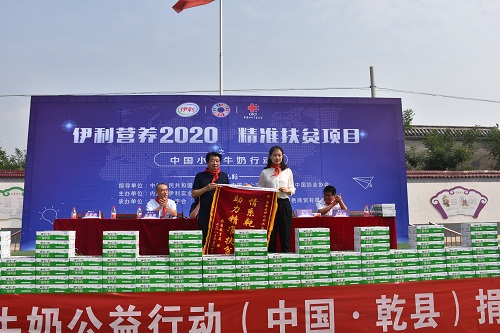 捐赠仪式上,六名少先队员代表学校接受学生营养奶捐赠。教育局主要负责人致答谢辞,感谢中国红十字基金会和伊利集团对乾县教育的支持的关心,并向伊利集团赠送锦旗一面。伊利集团陕西分公司负责人作发言。